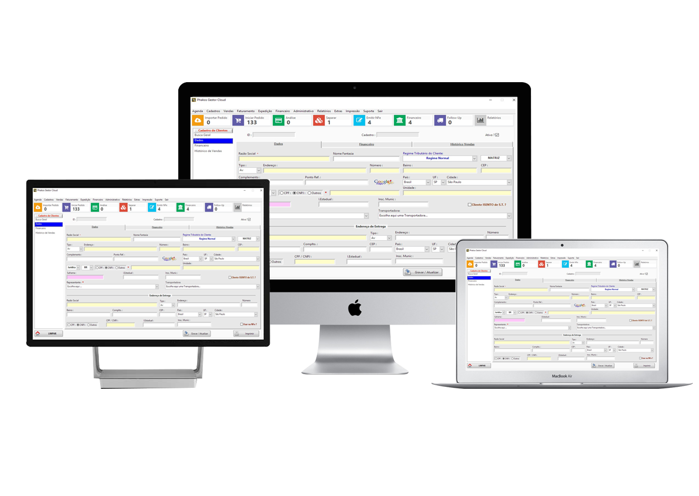 Aqui temos o controle de Fórmulas, Produção, Vendas, Pedidos On-Line e Expedição.